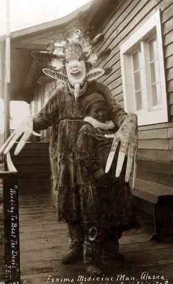 Šamanismus u Inuitů má blízko severoasijskému a zaměřuje se na cestu pod mořskou hladinu k Matce Zvířat Sedně, která zajišťuje hojnost zvěře, plodnost žen a dobré počasí. Šaman je obnovitel vztahu kmene k Sedně, který bývá narušován porušením tabu. U severoamerických Indiánů má šaman velmi důležitou úlohu v náboženském životě, nikde však není tato úloha výhradní, zastává ji i kněz, kouzelník (ten provozuje černou magii)[26], ale také každý jednotlivec. Šaman se od nich liší intenzitou své zkušenosti a moci, ale každý Indián může mít ochranného ducha a mystické vize. Od kněze se šaman odlišuje především svou schopností extáze a od čaroděje svou pozitivní rolí. Jeho nejdůležitější úlohou je léčení, ale také magicko-náboženské rituály (např. při společném lovu) a také má moc nad počasím a věštecké schopnosti a dokáže ochránit před černou magií. V některých indiánských kulturách však šamani plní i kněžské funkce Existují také tajné společnosti a mystické kulty jako Midewiwin a Ghost Dance Religion. Ačkoliv vykazují šamanistické prvky, přijímají každého kdo prokáže jisté extatické schopnosti. Často se také objevuje antagonismus mezi těmito bratrstvy a šamany, někteří šamani však do nich přesto vstupují.[27] Šamanismu existuje také v Jižní Americe, kde často šaman splývá s knězem a čarodějem.