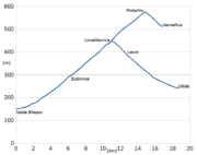 Nejnižší stanice, Velké Březno, leží u Labe v nadmořské výšce 149 metrů. Nejvyšší místo na trati, 576 m n. m., je u zastávky Mukařov.
