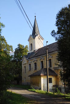 Místní tvrz byla založena vladykou Sezemou z Malšína v druhé polovině 14. století a v první polovině 16. století byla přestavěna na renesanční zámek. Svou nynější podobu získal v druhé polovině 18. století za vlastnictví Ústavu šlechtičen, kdy byl barokně přestavěn, a v roce 1820, kdy bylo po požáru odstraněno jedno ze tří křídel. K areálu zámku patří hospodářský dvůr a zámecký park. Na severovýchodním okraji vsi, v blízkosti zámku, stojí kostel sv. Jana Nepomuckého s obdélnou lodí. Postaven byl v roce 1767 jako zámecká kaple, pravděpodobně okolo roku 1861 byla dostavěna jeho věž. Socha sv. Jana Nepomuckého z roku 1767 stojí na hranolovém podstavci u křižovatky mezi bývalým zámkem a hřbitovem u východního okraje vsi.
