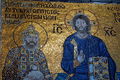 Hagia Sofia byla postavena na popud byzantského císaře Justiniána, a to na místě, kde stály již dříve dva basilikální chrámy Boží Moudrosti (řecky sofia) z let 335 a 415. Architekty stavby byli Isidor Mílétský a Anthémios z Trallu a byla vysvěcena 26. prosince 537, na vnitřní výzdobě mozaikami a freskami se pracovalo dalších více než sto let. Dodnes je nejvýznamnější památkou byzantské architektury, symbolem celého Istanbulu. Již roku 558 se její kupole při zemětřesení zřítila, další zemětřesení v letech 989 a 1346 neměla tak ničivý účinek. Chrám byl v této době také sídlem konstantinopolského patriarchy. Po dobytí Konstantinopole 4. křížovou výpravou byl chrám Boží Moudrosti sídlem latinského patriarchy konstantinopolského.