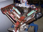 - Typ: osmiválcový, vodou chlazený pístový motor s válci do V (90°)