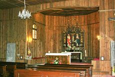 Pokud je či byl kostel kapitulním či pokud jde o klášterní kostel žebravých řádů, bývá presbytář značně rozlehlý a jsou v něm umístěny chórové lavice neboli stally. Vždy je v něm umístěn také hlavní oltář a kněz (lat. presbyter) tam koná bohoslužbu. Kromě oltáře jsou zde umístěny ještě dva pulpity, na čtení Písma. Na rozhraní lodi a presbytáře (někdy i vysunuta poměrně hluboko do lodi) je umístěna vyvýšená kazatelna. Po II. vatikánském koncilu je zde navíc ještě umístěn obětní stůl. V gotických kostelích je také často dochován kamenný nástěnný sanktuář, který má Čechách v pozdní gotice často podobu velmi zdobného kamenného věžového pastoforia.