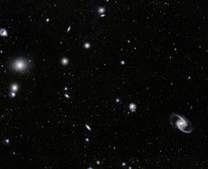 V této oblasti se vyskytuje téměř dokonalé vakuum (tzv. vesmírné vakuum). Má se za to, že na 1 m³ je 1 atom hmoty, a to z více než 99 % atom Vodíku (tzv. vodíkové plazma), v ostaních případech Helium, těžší atomy už jen velmi zřídka. Teprve v několika posledních letech, kdy byla objevena temná hmota a temná energie, bylo spočítáno, že temné hmoty vesmírný prostor obsahuje většinu (asi 85 % oproti „normální“ hmotě). Kromě extrémně malého počtu atomů obsahuje vesmírný prostor i některé subatomární částice, jako např. neutrina. Vesmírným prostorem se mohou též šířit elektromagnetická záření různé intenzity energie, potažmo vlnové délky, stejně jako do něj mohou hvězdy chrlit tzv. sluneční vítr, nebo hmotu tvořenou těžšími atomy při výbuchu supernov.