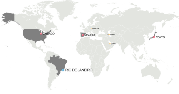 | Kandidátské město | stát | první kolo | druhé kolo | třetí kolo |