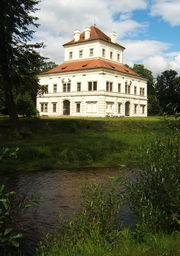 Na místě staršího dřevěného letohrádku Julia Jindřicha, vévody Sasko-Lauenburského nechal postavit podle návrhu stavitele Abraháma Leuthnera v letech 1673-1679 Julius František, vévoda Sasko-Lauenburský letohrádek nový. Vnitřní úpravy byly dokončeny v roce 1683. Centrální, samostatně stojící stavba čtvercového půdorysu s altánovým nástavcem, tvořícím druhé patro, je ze všech čtyř stran prolomena vstupy s kamennými portály. Mezi jednotlivými okenními osami probíhá pilastrový řád, v přízemí s pilastry bosovanými, v patře hladkými s toskánskými hlavicemi. Pod korunní římsou probíhá jednoduchý vlys s triglyfy. V plochách nad okny jsou obdélné výplně s diamantovým motivem. Ve středu dispozice je vytvořena ústřední hala, otevřená průhledem do patra, s malbou pokračující iluzivní architektury s alegorickými postavami. V přízemí je hala řešena na půdorysu osmiúhelníku s nikami v podobě grót s kašnami. Nad nimi jsou v patře řešeny balkónky s balustrádou, procházející do jednotlivých místností. Interiér upravoval v roce 1692 Domenico Egidio Rossi. Místnosti klenuty neckovými klenbami se štukovou výzdobou. Letohrádek je majetkem státu a je v něm umístěna Galerie umění.