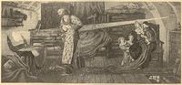 Jeremiah Horrocks při prvním pozorování přechodu Venuše roku 1639. Obraz Slunce se promítá přes dalekohled na stínítko.