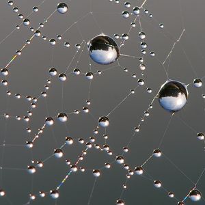 Adheze: Kapky rosy na pavučině.