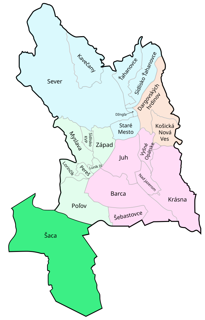 Soubor:Map of Šaca borough, location within Košice, Slovakia.png