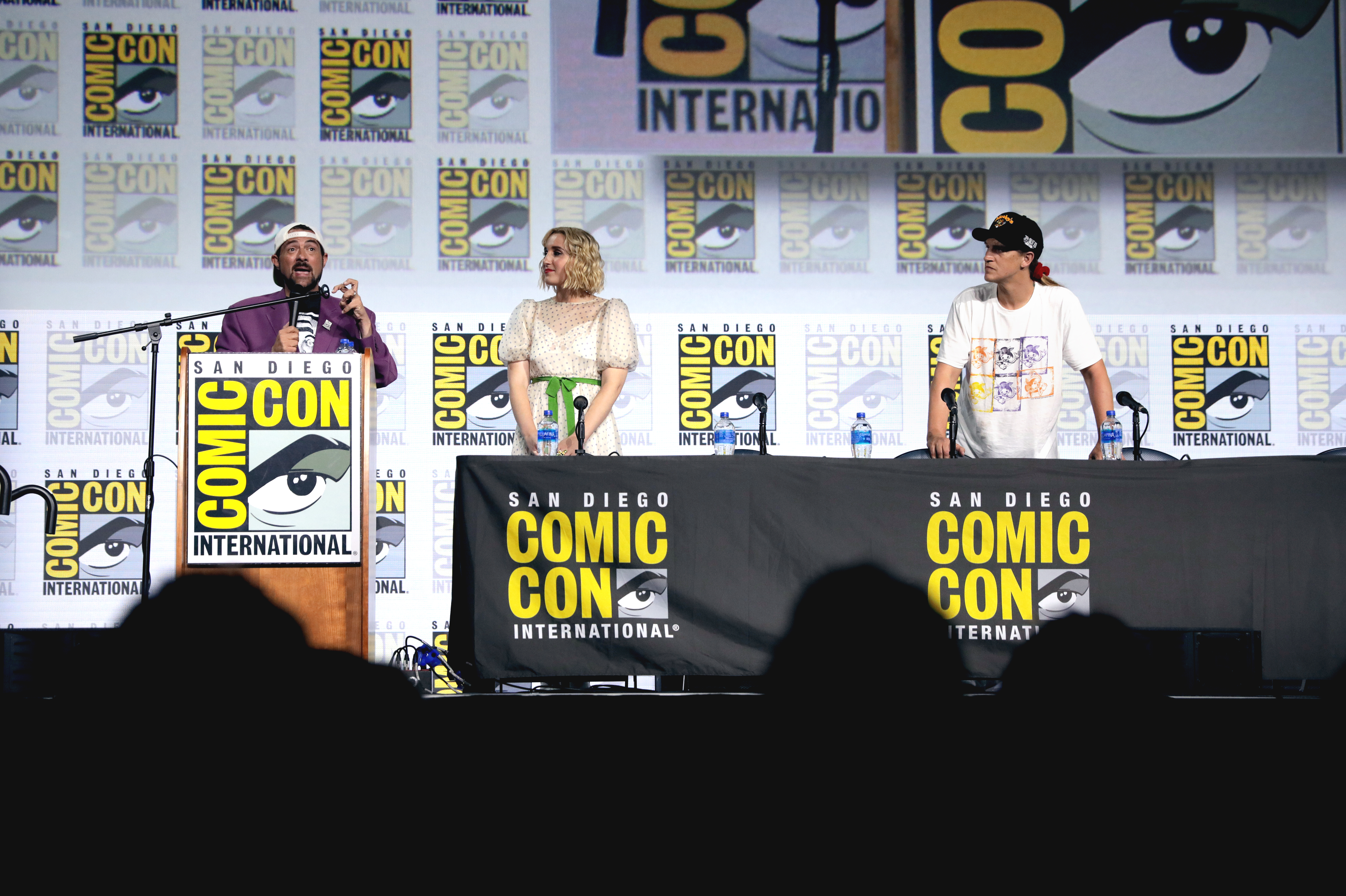 • Kevin Smith, Harley Quinn Smith and Jason Mewes speaking at the 2019 San Diego Comic Con International, for "Jay and Silent Bob Reboot", at the San Diego Convention Center in San Diego, California.