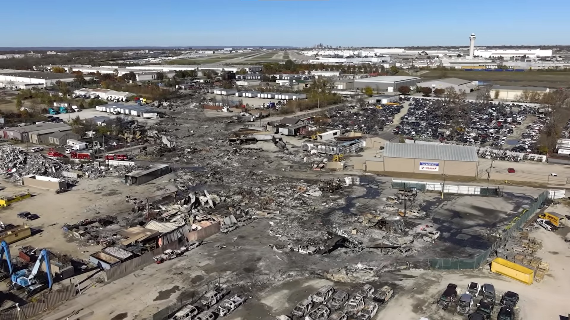 - Source: NTSB B-Roll - Aerial View of UPS Cargo Airplane Crash Scene in Louisville, KY