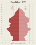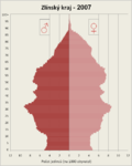 Struktura obyvatelstva podle věku také zobrazuje demografické stárnutí.