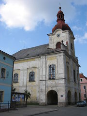 Kostel sv. Vavřince (1724) v barokním stylu se nachází na místě bývalého dřevěného kostela, který byl doložen již v 15. století. V kostele se dochovalo původní dřevěné vybavení. Cenný je hlavní oltář s obrazem sv. Vavřince, po stranách kostela jsou umístěny ještě 4 další oltáře. Hlavní vchod do kostela je osazen mohutnými dubovými dveřmi s figurálními řezbami ze Starého a Nového zákona. Poutní kostel Panny Marie Pomocné na Kamenci byl postaven v roce 1754. V jeho sousedství stojí dřevěná poustevna. Kostel Nejsvětější Trojice ve Zdoňově, původně gotický, renesančně přestavěný. Horní zámek (1599) byl postaven Václavem Bohdaneckým z Hodkova. V budově nyní sídlí Městský úřad. Dolní zámek (1664) byl vystavěn Janem Václavem Schmiedelem v barokním stylu. Přilehlou zahradu lemuje kamenná zeď s rokokovými plastikami. Dnes je zámek využit jako domov důchodců. Kříž smíření na Bukové hoře. Památník byl vztyčen v roce 2002 na místě, kde bylo v roce 1945 zastřeleno 23 českých Němců. Autorem monumentu je sochař Petr Honzátko.