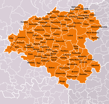 Benešov • Beroun • Kladno • Kolín • Kutná Hora • Mělník • Mladá Boleslav • Nymburk • Praha-východ • Praha-západ • Příbram • Rakovník |