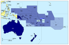 Americká Samoa • Cookovy ostrovy • Francouzská Polynésie • Havajské ostrovy • Niue • Nový Zéland • Pitcairnovy ostrovy • Samoa • Tokelau • Tonga • Tuvalu • Velikonoční ostrov • Wallis a Futuna